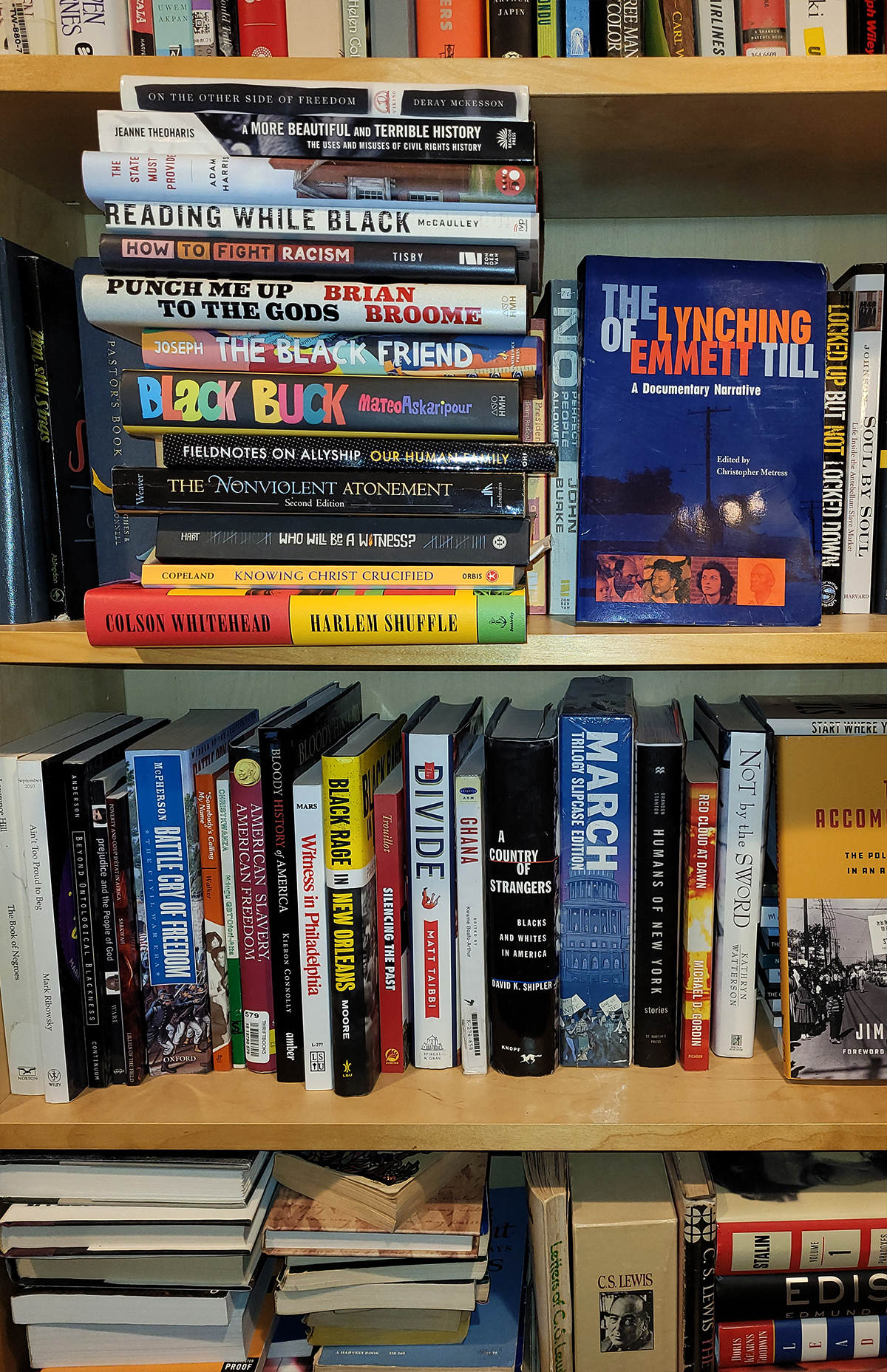 Stephen Goodness, that’s a hard question to answer. I’m always reading. I have more than two dozen books in my to-be-read pile on a library cart that I bought just to keep them organized, and perhaps 300 more books that I’ve read on my shelves or stacked in my office about racism and faith. I don’t think any two books could encapsulate the whole of the Black experience, but two of the books I read near the beginning of the journey were the ones that helped to bring light to my eyes.